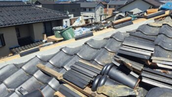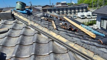 富山市にて戸建て住宅の棟積替え,雪止金具取付工事
